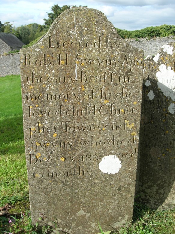 | SWYNY | Erected by | Robt H SWYNY Ap- | thecary Bruff in | memory of his be- | loved child Christo- | pher Townsend | SWYNY who died | Dec 22 1858 aged | 15 months | |